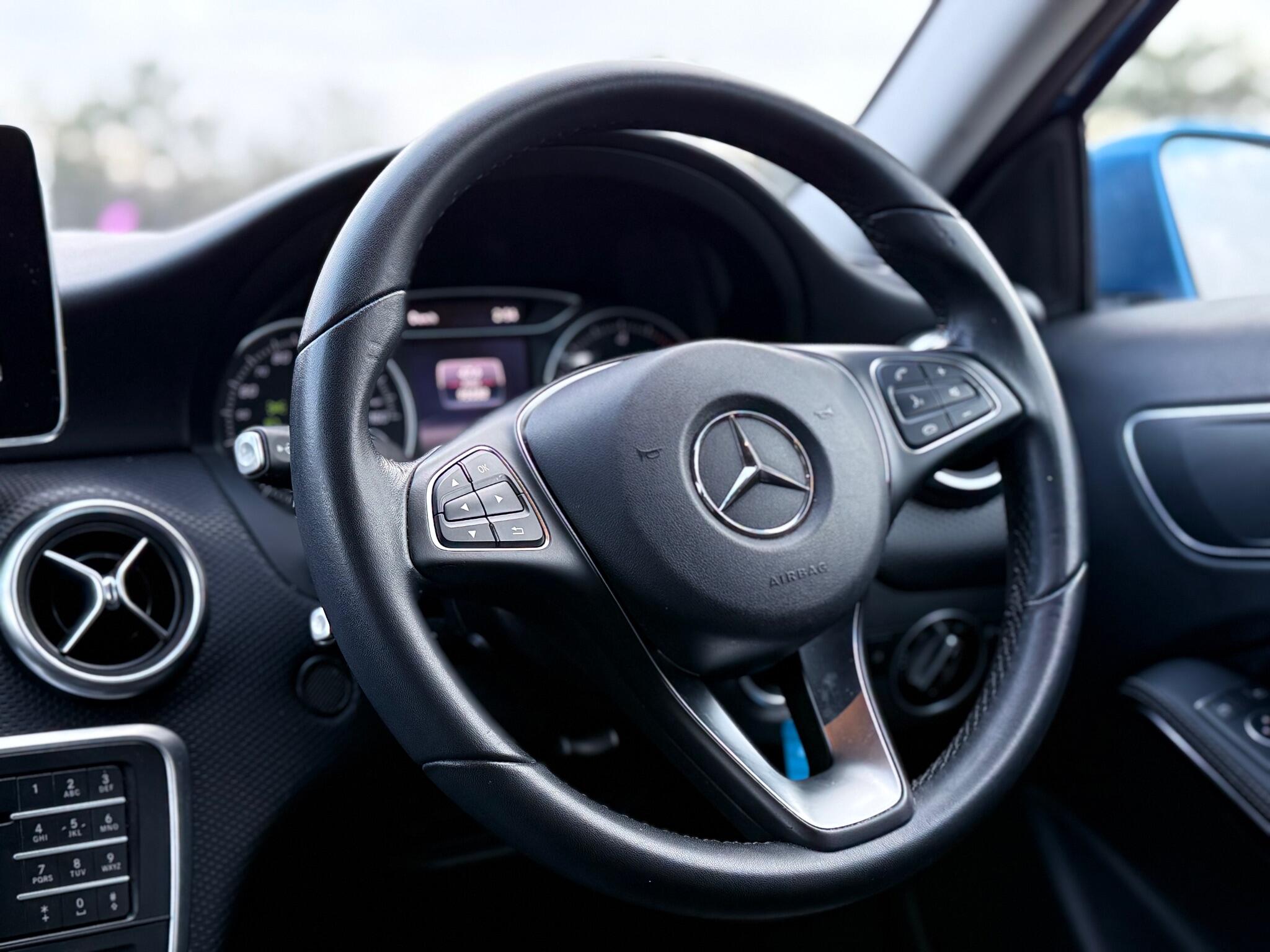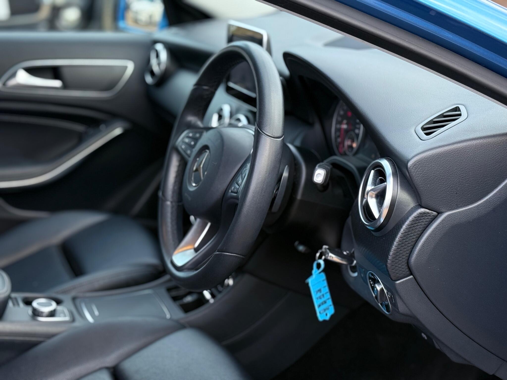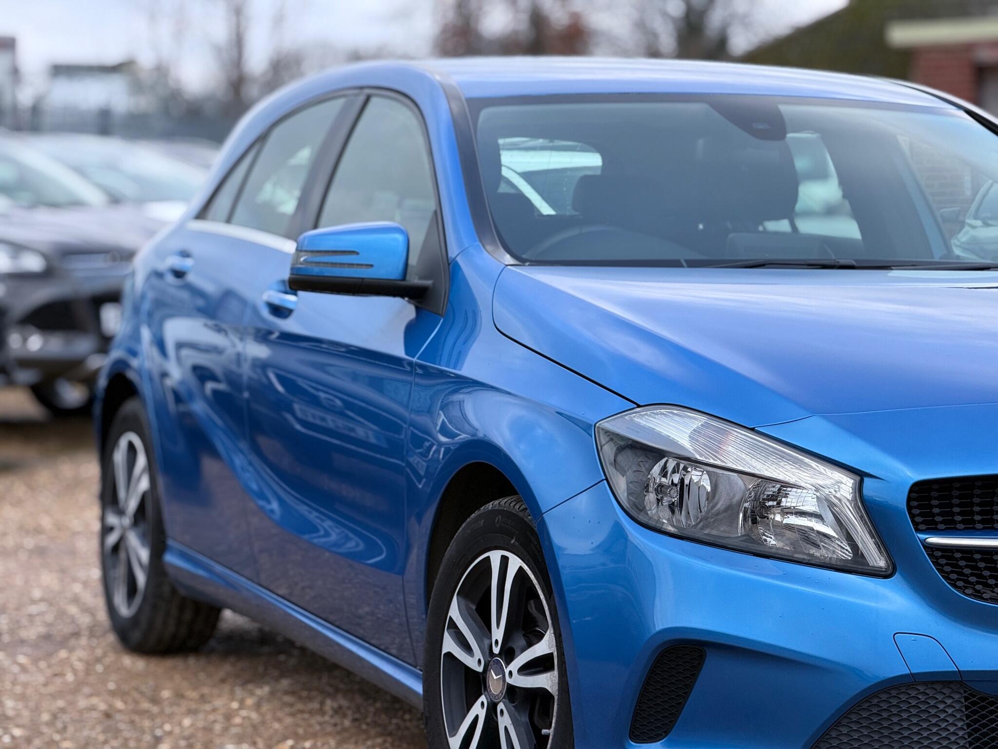We are pleased to offer this fantastic 2 Owner from new 2015 Mercedes A180d se 7G-DCT Auto Euro 6, very well maintained with 95k miles on the clock followed by 5 service stamps. Will be given a fresh service at time of sale. Long MOT expires 28/1/27. Metallic Blue in colour sitting on 16" Alloys with Black Leather seats. Its equipped with Satellite Navigation, Bluetooth Telephone, USB connection, Radio, Start/Stop, Reverse Colour Camera, Air con, Cruise control and usual Mercedes Spec. Car comes complete with 2 Keys, Service History, Locking wheel nut and the Owners manual.