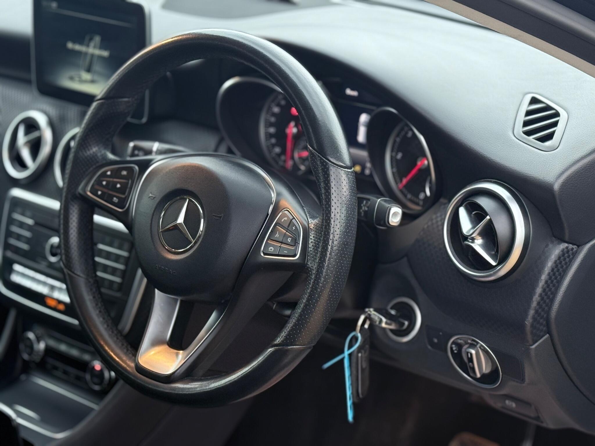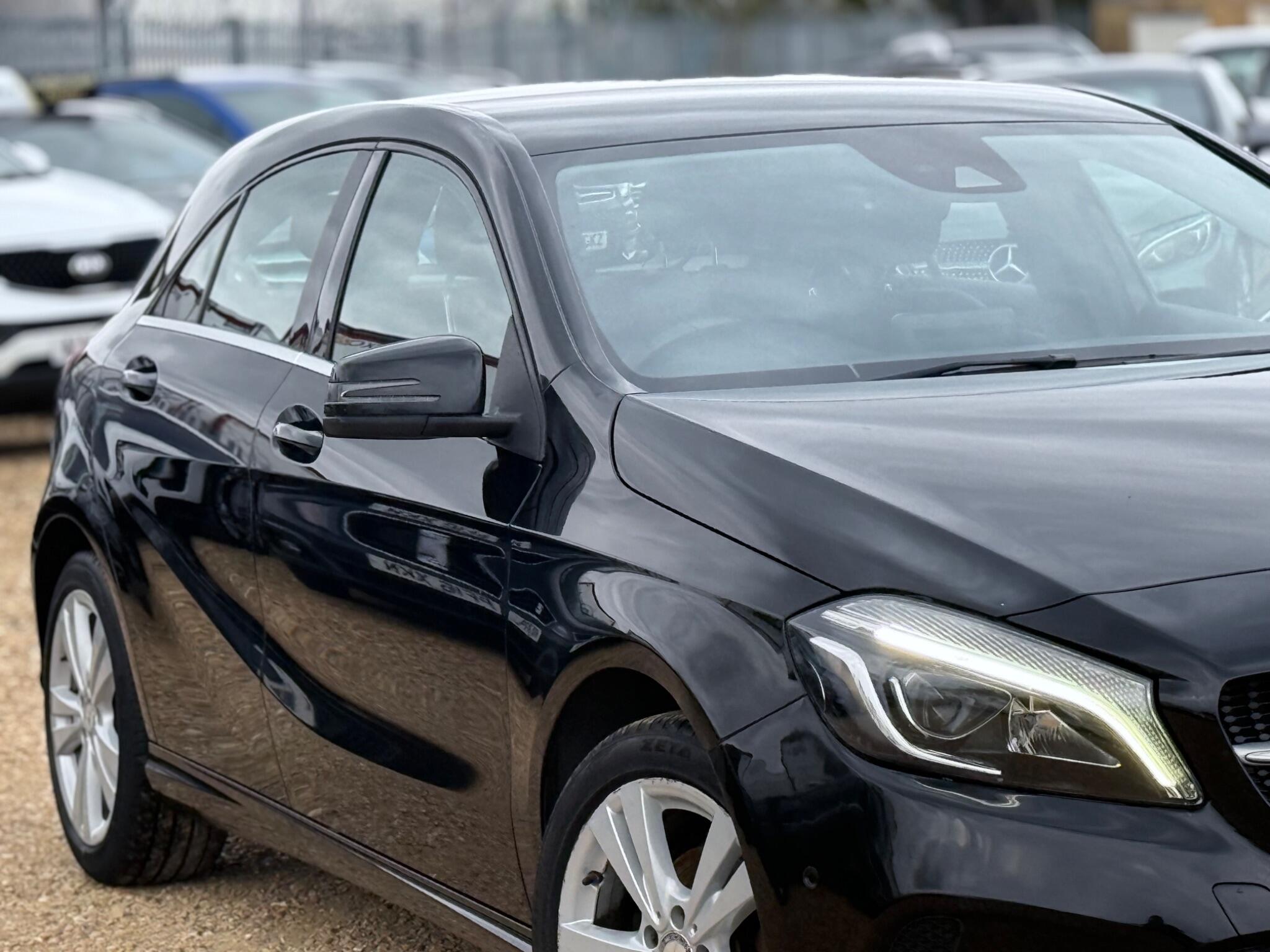 We are pleased to offer you this fantastic 2 Owner from new 2017 Mercedes A180d Sport (Premium) Auto 7G DCT Euro 6, very well maintained with only 87500 miles with a Full Service History. Will be given a fresh service at time of sale. MOT expires 3/5/25. It comes equipped with Black leather seats, Heated front seats, Start/Stop, Bluetooth Telephone Prep, USB Connection, advanced COMAND Online System, which includes satellite navigation, and a 180 degree reversing camera with parking guidelines for effortless manoeuvring. Low £20 TAX band for the year. Further enhancing the driving experience are LED headlights for superior visibility and Bluetooth connectivity for seamless audio and calls. Car comes complete with 2 Keys and Owners Manual.